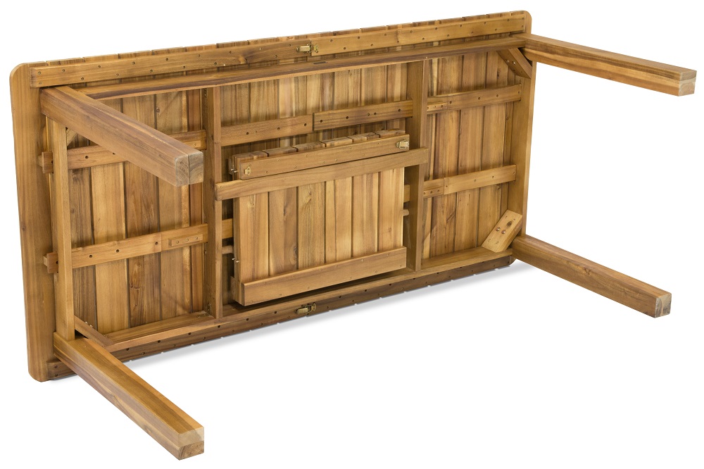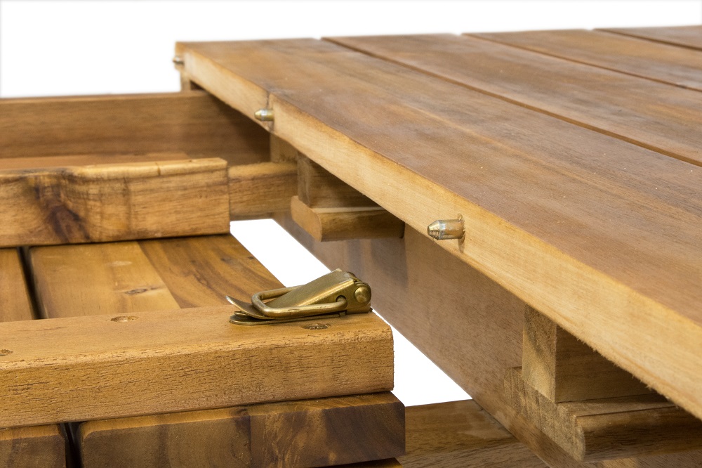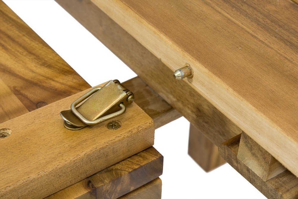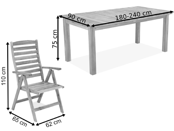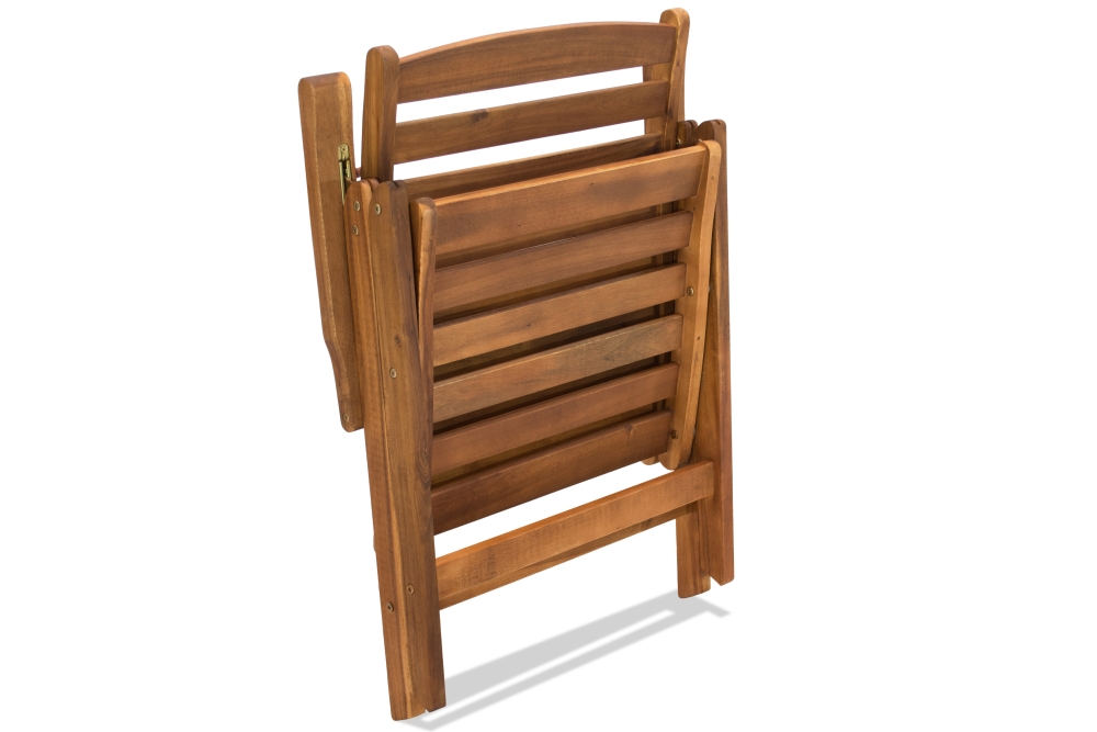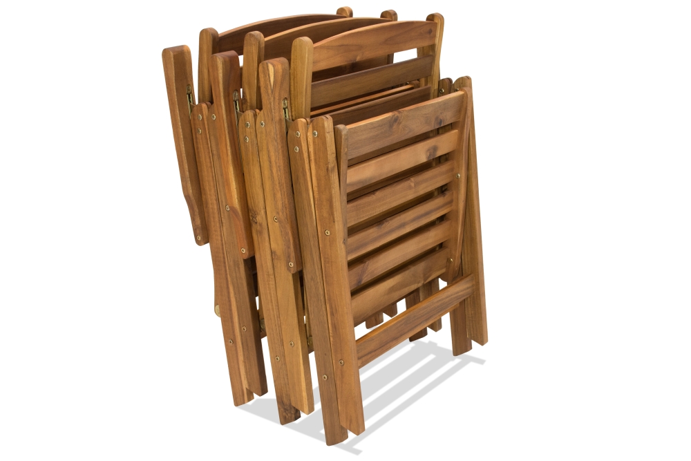 - La table et les chaises sont réalisés en bois d’acacia qui a une densité élevée, donc est très résistant aux dommages.
