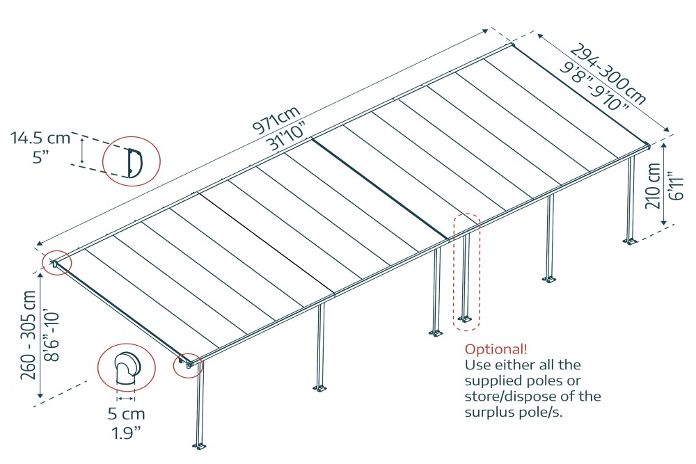Dimensions du colis (cm): | 1x(309x65x22.5), 1x(309x65x26.5), 1x(49x11.5x9.5) |